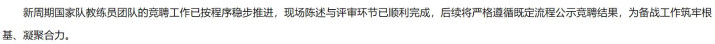 根据中国乒协方面的透露可知,本次教练组的竞聘工作已经结束陈述与评审环节,接下来“将严格遵循既定流程公示竞聘结果”,最终目的是“为备战工作筑牢根基、凝聚合力”。上一届教练组竞聘结束后,完整名单是在2023年1月4日出炉,不过总教练、男女队主教练人选更早公布,所以不出意外的话今年球迷们也会在元旦假期结束后不久收到相关消息。